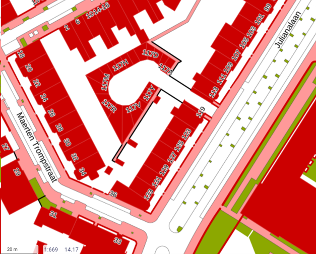 In rood is de oude versie van het NWB te zien en in groen is de geocorrectie te zien.