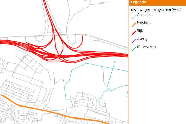 Voorbeeld van het NWB met onderscheid naar wegbeheerder